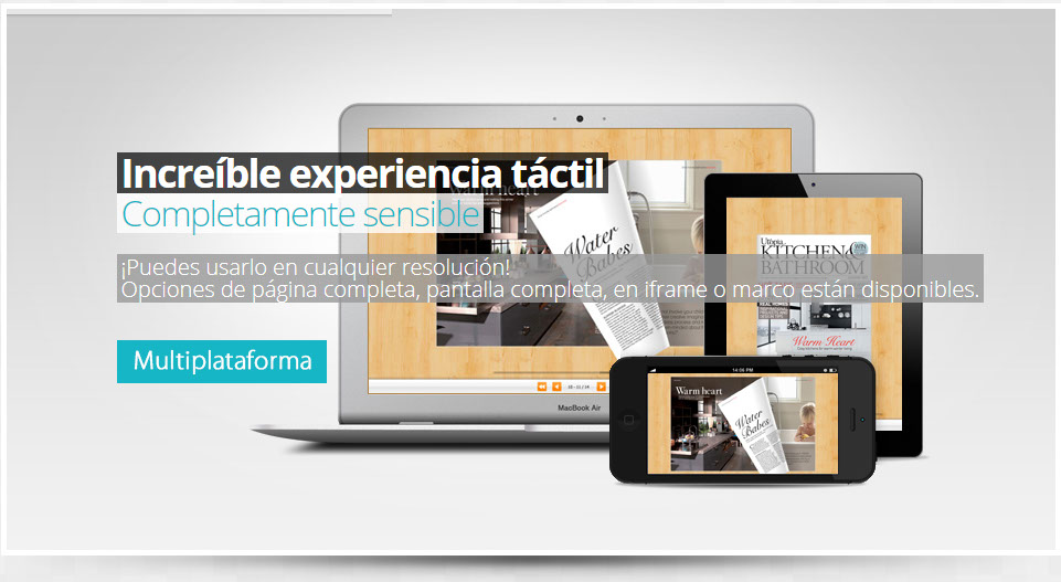 El material subido al sitio es visto a través de un navegador web (pads, iphones, android, PCs) y está hecho para parecerse lo más posible a una publicación impresa, incluso con alternativa de tapas o cubierta dura, con un formato que permite la visualización de dos páginas a la vez (como un libro o una revista abiertos) y una vuelta a la página animada con sonido o sin él. Aunque los documentos de Publicación Digital están diseñados para verse en línea, es posible guardar una copia de ellos descargándola a su dispositivo. Contáctanos aquí