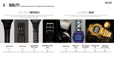 While urethane resin remains a mainstream band material, various other materials have been developed in pursuit of greater strength. By devoting unstinting attention to materials and finishing, G-SHOCK seeks to express the eternal value of strength.