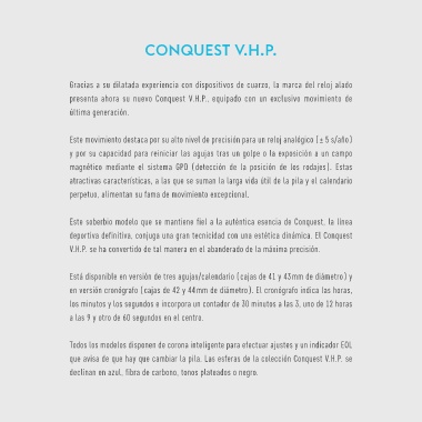 presenta ahora su nuevo Conquest V.H.P., equipado con un exclusivo movimiento de