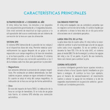con una precisión garantizada de ± 5 segundos/anuales. no requiere corrección de la fecha. El calibre impide que