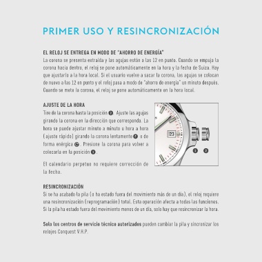 que ajustarlo a la hora local. Si el usuario vuelve a sacar la corona, las agujas se colocan