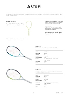 The ASTREL series features oversized racquets for easy power and added comfort for beginners to intermediate-level players who prefer a light,